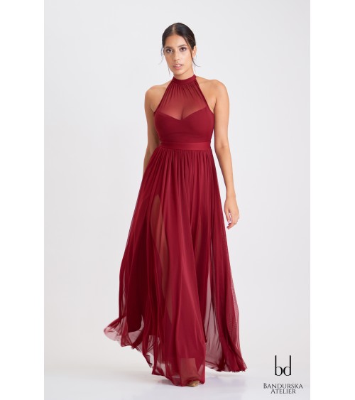 Wysokie rozporki w tkaninie pod tiulem.